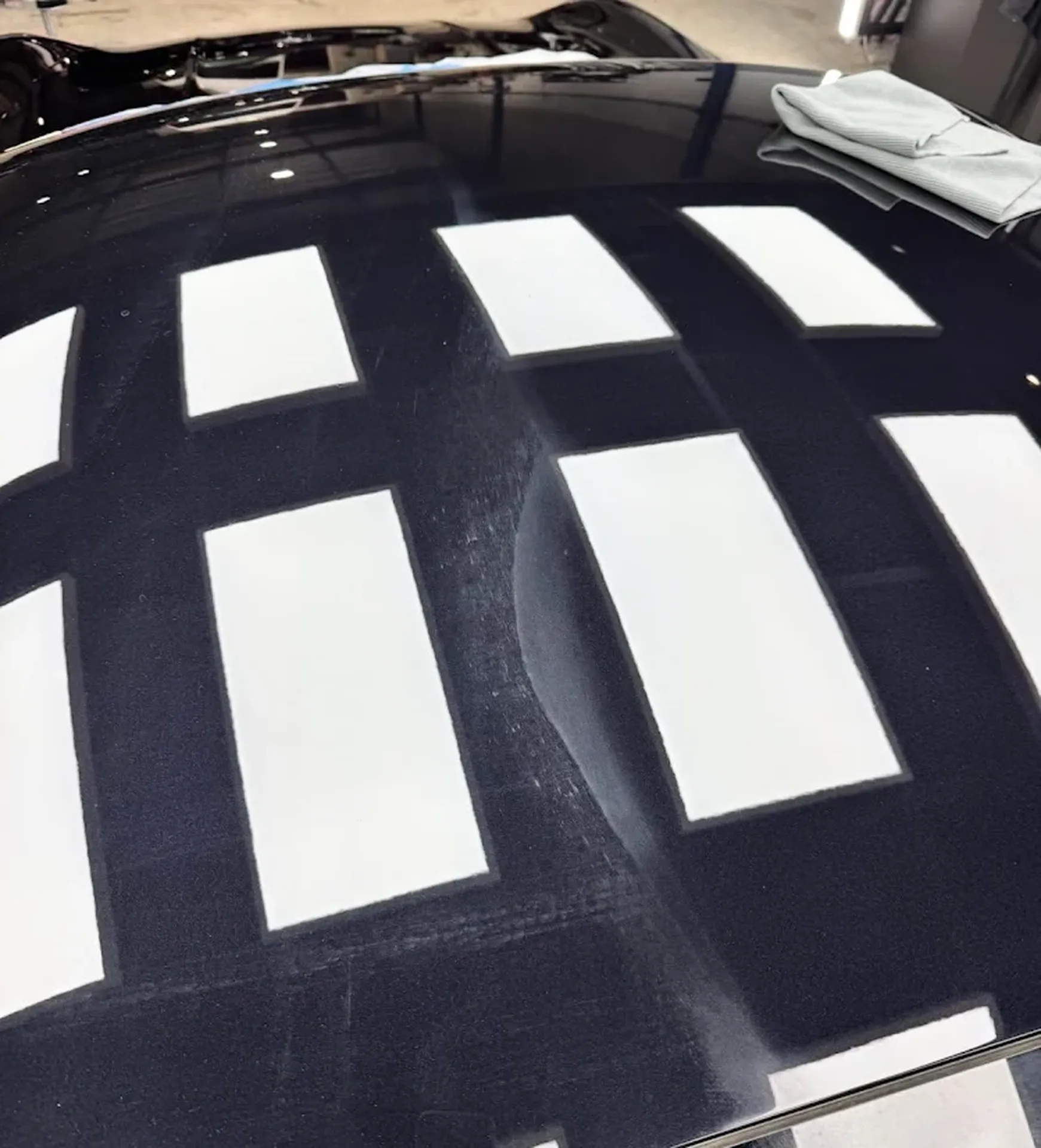 Après une décontamination complète, plusieurs étapes de correction peinture ont été réalisées afin d’éliminer les traces de calcaire, d’uniformiser le vernis et de restaurer la profondeur de teinte. Ce lustrage Porsche 992 à Marne-la-Vallée Chessy 77700 permet déjà de retrouver une brillance nette et une finition visuellement plus saine.